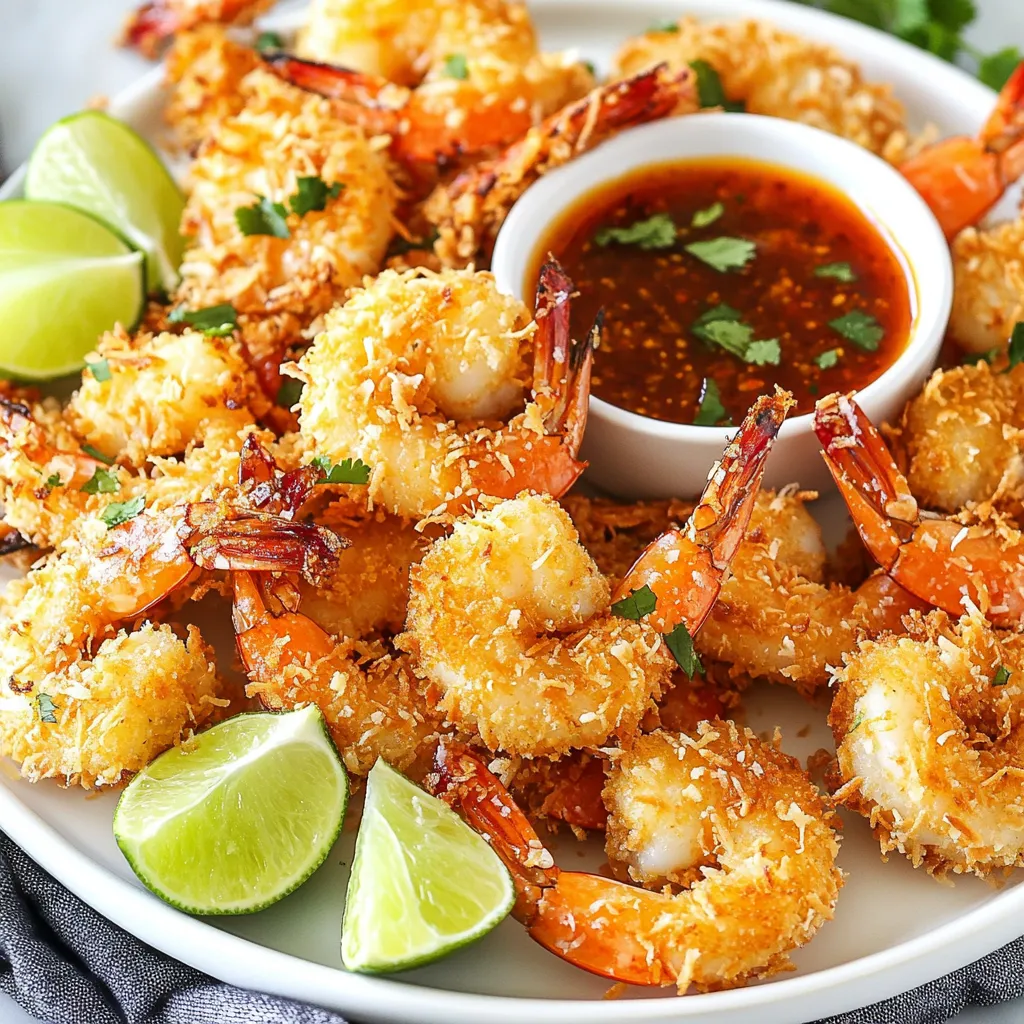Serve your coconut shrimp on a bright platter. Add fresh lime wedges for a burst of flavor. A side of sweet chili sauce makes a perfect dip. You can also sprinkle fresh cilantro over the dish for a pop of color and taste. Pair it with a salad or rice to make a full meal. This dish works great as an appetizer for parties or a fun family dinner.