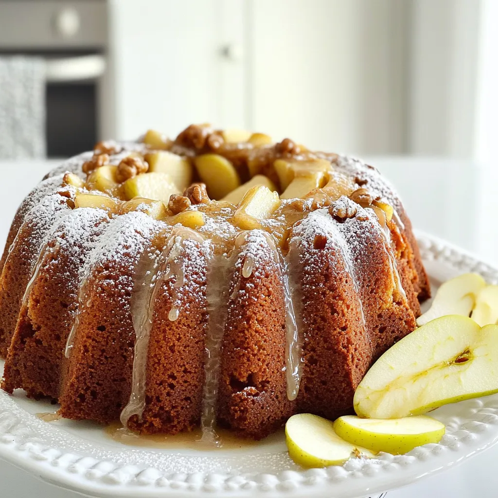 For a glaze, mix powdered sugar with a splash of apple cider. Drizzle this over the top of the cake for added sweetness. To make it more beautiful, arrange thin apple slices beside the cake. This gives a charming autumn feel and makes it ready for your guests.
