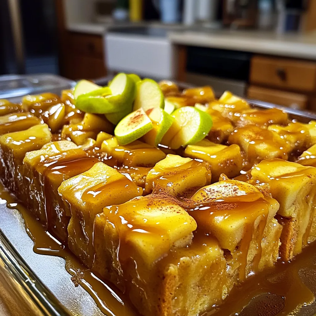 - 6 cups of day-old bread, cubed - 3 cups of whole milk - 1 cup of heavy cream - 1 cup of granulated sugar - 4 large eggs - 2 teaspoons of pure vanilla extract - 3 medium apples, peeled, cored, and diced - 1 teaspoon of ground cinnamon - 1/2 teaspoon of ground nutmeg - 1 cup of caramel sauce - 1/2 cup of chopped pecans (optional) - A pinch of salt I find that using brioche or challah gives the best texture. These breads soak up the custard well. They add a soft, rich flavor. You want bread that is a bit stale. Fresh bread will turn mushy. For a deeper taste, try adding chocolate chips or raisins. You can also add a splash of bourbon or rum for warmth. If you like spice, try adding a pinch of ginger or clove. Each of these options will bring a new twist to your dish. Start by preheating your oven to 350°F (175°C). Grease a 9x13 inch baking dish with butter or non-stick spray. This step helps to prevent sticking. Use a generous amount, as it ensures easy serving later. In a large mixing bowl, whisk together the following ingredients: - 3 cups of whole milk - 1 cup of heavy cream - 1 cup of granulated sugar - 4 large eggs - 2 teaspoons of pure vanilla extract - 1 teaspoon of ground cinnamon - 1/2 teaspoon of ground nutmeg - A pinch of salt Mix these until smooth. This custard will soak into the bread and create a soft, creamy texture. Take 6 cups of cubed day-old bread and gently fold it into the custard. Make sure each piece gets coated. Allow this mixture to sit for 10-15 minutes. This soaking time is key for flavor and texture. Once the bread is soaked, fold in 3 diced apples and, if you like, 1/2 cup of chopped pecans. Use Granny Smith or Honeycrisp apples for a tart flavor. This adds sweetness and crunch to the dish. Pour the soaked bread mixture into your prepared baking dish. Spread it out evenly. Drizzle half of the caramel sauce over the top. Bake for 45-55 minutes. The center should be firm, and the top will be golden and delicious. In a small saucepan, combine: - 1 cup of heavy cream - 1/2 cup of granulated sugar - 1 teaspoon of vanilla extract Heat this mixture over medium heat, stirring until the sugar dissolves. Cook for about 5-7 minutes until it thickens slightly. Remove from heat and let it cool for a few minutes. Cut the bread pudding into squares. Drizzle the remaining caramel sauce and a generous amount of vanilla sauce over each piece. For a special touch, sprinkle cinnamon and add fresh apple slices on top. A scoop of vanilla ice cream pairs perfectly with this warm dessert. Enjoy! - Use day-old bread. It absorbs the custard better. - Brioche or challah gives a soft and rich texture. - Soak the bread for 10-15 minutes. This helps it soak up the flavors. - Whisk the custard well to mix all the ingredients. - Add diced apples evenly to ensure every bite has fruit. - Drizzle caramel sauce on top before baking for extra sweetness. - Don’t skip the soaking step. Bread needs time to absorb. - Avoid using fresh bread. It won’t soak up enough custard. - Watch the baking time closely. Overbaking can dry it out. - Skip the salt at your own risk. It enhances all the flavors. - Don’t forget to let it cool slightly before serving. This helps it set. - Serve warm with a scoop of vanilla ice cream. - Drizzle extra caramel sauce over each piece. - Top with whipped cream for a light touch. - Garnish with fresh apple slices or a sprinkle of cinnamon. - Pair with a cup of coffee or tea for a cozy treat. {{image_4}} You can change the flavors in your caramel apple bread pudding to suit your taste. Here are some fun ideas: - Add raisins or dried cranberries for a chewy texture. - Swap apples for pears for a sweeter option. - Use cinnamon rolls instead of bread for a unique twist. - Add chocolate chips for a rich, decadent touch. - Sprinkle in some orange zest for a fresh burst of flavor. If you have dietary needs, you can easily modify this recipe: - Use gluten-free bread for a gluten-free option. - Substitute almond milk for whole milk and heavy cream for a lighter version. - Replace eggs with flaxseed meal mixed with water for a vegan recipe. - Use maple syrup instead of sugar for a natural sweetener. - Ensure your caramel sauce is dairy-free if needed. Serving your caramel apple bread pudding can be just as fun as making it: - Top each piece with a scoop of vanilla ice cream for a warm-cool combo. - Drizzle with whipped cream for a light, airy touch. - Serve it warm with a side of fresh fruit for added freshness. - Pair it with a cup of coffee or tea for a cozy dessert experience. - Garnish with a sprinkle of nuts or a dash of cinnamon for extra flair. To keep your caramel apple bread pudding fresh, let it cool completely first. Place it in an airtight container. You can store it in the fridge for up to five days. This way, you can enjoy a sweet treat whenever you like! When you’re ready to eat leftovers, preheat your oven to 350°F (175°C). Place the bread pudding in an oven-safe dish. Cover it with foil to keep it moist. Heat it for about 15-20 minutes. If you want, you can also microwave individual portions for 1-2 minutes on high. If you want to save some for later, you can freeze it. Cut the bread pudding into squares. Wrap each piece tightly in plastic wrap and then place it in a freezer bag. It can last for up to three months in the freezer. When you want to enjoy it, take it out and let it thaw in the fridge overnight. Then, reheat it as mentioned above for a delicious treat! Yes, you can use different types of apples. Granny Smith offers a tart flavor that contrasts well with the sweet sauce. Honeycrisp gives a nice crunch and sweetness. Other types like Fuji or Gala can work too. Just pick apples that hold their shape when cooked. Check the center of the bread pudding. It should feel firm, not jiggly. The top should turn a golden brown. You can also insert a knife in the center. If it comes out clean, your pudding is ready. Yes, you can prepare this recipe ahead of 