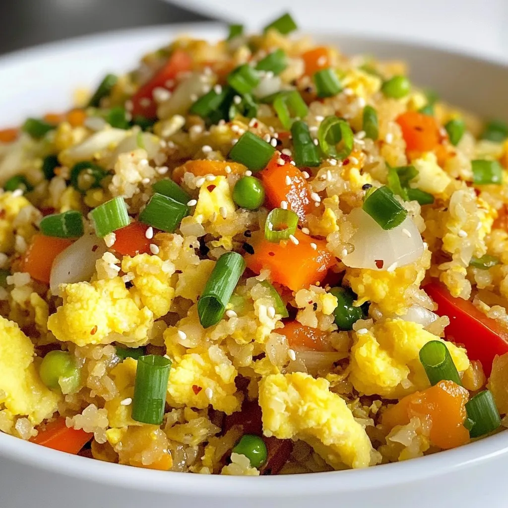 Cauliflower fried rice is a healthy, low-carb take on traditional fried rice. Instead of rice, we use grated cauliflower. This dish is packed with vitamins and minerals. Cauliflower is high in fiber and low in calories, making it great for weight loss. The colorful veggies add more nutrients. You can tailor the flavors with spices and sauces, making each batch unique.