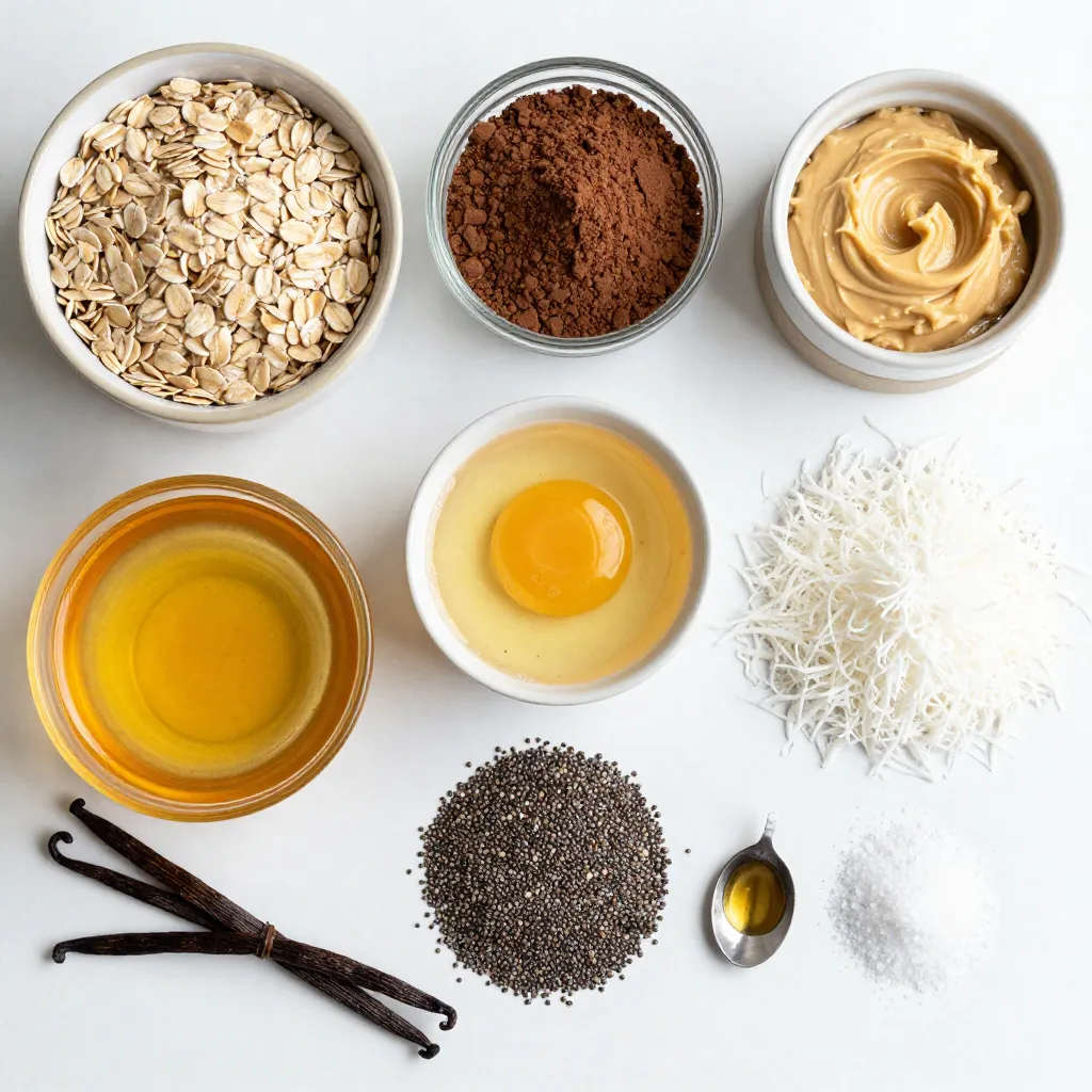 - 1 cup rolled oats - 1/2 cup unsweetened cocoa powder - 1/2 cup almond butter (or any nut butter of your choice) - 1/3 cup honey or maple syrup - 1/2 cup shredded unsweetened coconut - 1/4 cup chia seeds - 1 teaspoon vanilla extract - A pinch of sea salt - Rolled oats: Great source of fiber. They help keep you full and satisfied. - Unsweetened cocoa powder: Packed with antioxidants. It can boost your mood and energy. - Almond butter: Full of healthy fats and protein. It supports heart health and muscle repair. - Honey or maple syrup: Natural sweeteners that provide quick energy. They also have vitamins and minerals. - Shredded coconut: Contains healthy fats and fiber. It can help with digestion. - Chia seeds: A tiny powerhouse! They are rich in omega-3s and protein, promoting heart health. - Vanilla extract: Adds flavor and can help reduce stress. - Sea salt: Enhances the taste and helps balance electrolytes. - Nut butter: Use sunflower seed butter for a nut-free option. - Honey: Maple syrup works well for a vegan choice. - Cocoa powder: Carob powder can replace cocoa for a caffeine-free snack. - Chia seeds: Flax seeds can be used instead if you want a different taste. {{ingredient_image_2}} 1. Start by taking a large mixing bowl. Add 1 cup of rolled oats and 1/2 cup of unsweetened cocoa powder. Whisk these together well. This helps blend the dry ingredients. 2. Next, add 1/2 cup of almond butter, 1/3 cup of honey (or maple syrup), 1 teaspoon of vanilla extract, and a pinch of sea salt. Stir this mixture until it becomes thick and smooth. This might take a few minutes. 3. Now, fold in 1/2 cup of shredded coconut and 1/4 cup of chia seeds. Make sure all ingredients mix well. The texture should be chewy, with a little crunch from the chia seeds. 4. To make rolling easier, place the bowl in the fridge for about 30 minutes. This helps firm up the mixture. 5. After chilling, take it out. Scoop small pieces, about 1 inch wide, and roll them into balls. Try to keep them uniform for even snacks! 6. For extra flavor, roll each ball in more shredded coconut. Press gently to make it stick. 7. Place the energy balls on a tray lined with parchment paper. Chill them in the fridge for at least 15 minutes before serving. - Use fresh ingredients. This helps improve taste and texture. - Ensure you mix well at every step. This makes sure the flavors blend. - If the mixture feels too dry, add a bit more almond butter or honey. This will help bind it better. - Chilling is key. It helps the mixture firm up for easier rolling. - Don’t skip the chilling step. This helps with rolling and keeps the balls from falling apart. - Avoid adding too much liquid. This can make the mixture too runny. - Make sure you measure your ingredients. Too much or too little can change the texture. - Don’t rush the mixing. Take your time to blend everything well. This makes a big difference in flavor. To boost the taste of your energy balls, try adding spices. Cinnamon gives a warm, cozy flavor. Nutmeg can add a nice twist. You can also use extracts. Almond extract adds a sweet note, while coconut extract brings more tropical vibes. Just a drop can make a big difference. When rolling the energy balls, keep your hands slightly damp. This helps prevent the mix from sticking. Aim for small, even balls, about 1 inch wide. If you want a fun touch, roll them in shredded coconut. It adds flavor and makes them look nice. After shaping, chill the balls again. This helps them hold their shape better. These energy balls fit many occasions. They make a great snack for kids after school. You can serve them at parties as a healthy treat. They also work well in lunchboxes. For a special touch, arrange them on a nice platter. Add some fresh fruit or nuts around them for color and appeal. Pro Tips Make it Vegan: Substitute honey with maple syrup for a completely plant-based energy ball. Custom Flavor Boost: Add a pinch of cinnamon or a dash of nutmeg to enhance the flavor profile. Storage Tips: Keep the energy balls in an airtight container in the fridge for up to a week for optimal freshness. Protein Power: For an extra protein kick, mix in some protein powder or chopped nuts into the mixture. {{image_4}} You can use many nut butters in your energy balls. Almond butter adds a light taste and healthy fats. Peanut butter gives a rich flavor and is high in protein. Cashew butter is creamy and sweet. Each nut butter brings unique nutrients and flavors. You can pick one based on your taste or what you have at home. Adding superfoods can boost the health benefits of your energy balls. Try mixing in some protein powder for extra energy. It helps build muscles and keeps you full. You might also add flaxseed for more fiber. Chia seeds already add fiber, but more will help. Superfoods can make your snack even better! You can change the flavors of your energy balls easily. For a fresh taste, add a few drops of peppermint extract. This makes a minty treat that's great for summer. If you like citrus, use orange zest. It gives a bright, zesty flavor. For coffee lovers, mix in instant coffee granules. This adds a rich, bold taste. Try these options to keep your snacks exciting and fun! Store your chocolate coconut energy balls in an airtight container. This helps keep them fresh. Place parchment paper between layers if stacking them. It prevents sticking and keeps them intact. You can keep them in the fridge for easy access. Homemade energy balls last about one week in the fridge. After that, they may lose flavor and texture. If you want them fresh longer, consider freezing them. To freeze energy balls, first, let them set in the fridge. Once they are firm, place them in a single layer on a baking sheet. Freeze them for an hour. After that, transfer them to a freezer bag. Squeeze out the air before sealing. They can last up to three months in the freezer. When you're ready to enjoy them, thaw them in the fridge overnight. Enjoy your snacks anytime! These ene