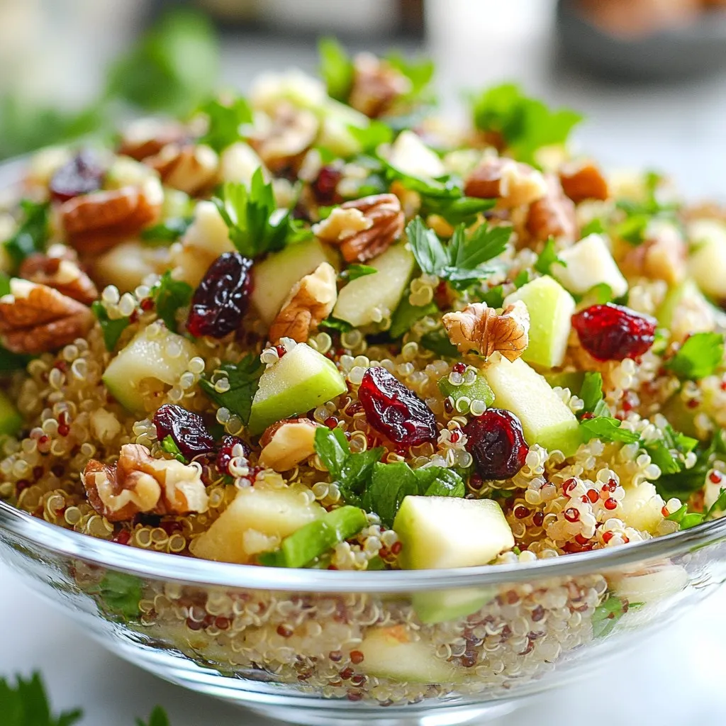 - Healthy and Nutritious: This salad is packed with protein from quinoa, healthy fats from walnuts, and vitamins from fresh apples and cranberries.