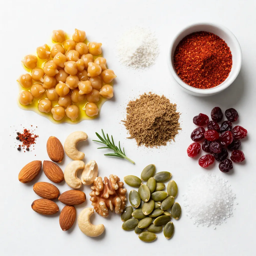 Chickpeas are the star of this snack mix. They are packed with protein and fiber. You can use canned chickpeas for quick prep or cook your own. Olive oil helps the spices stick and adds flavor. Smoked paprika gives a nice smoky taste. Garlic powder and cumin add extra layers of flavor. If you like spice, add cayenne pepper for a kick. Finally, sea salt brings out all the flavors.