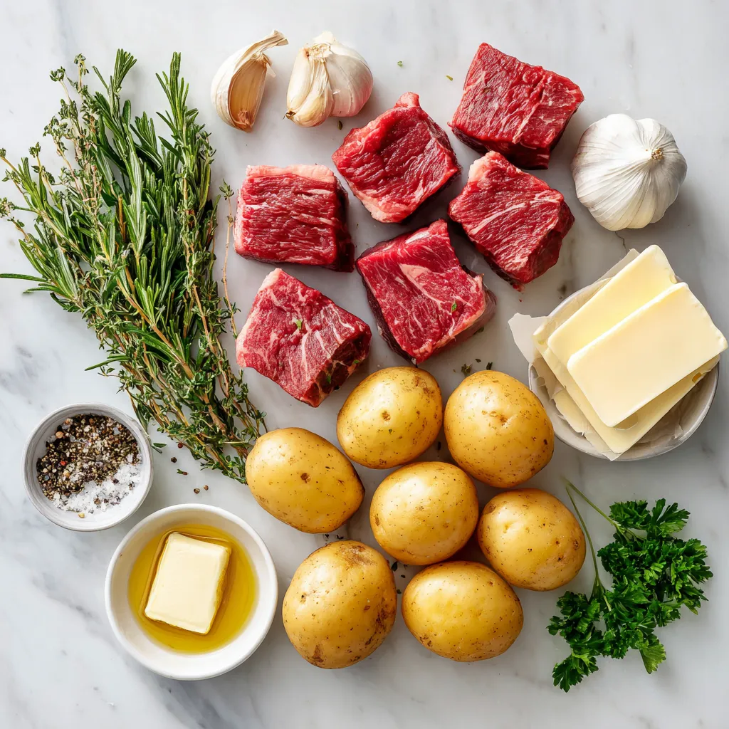 For the garlic butter, I use unsalted butter. It blends well with the steak and potatoes, giving a rich flavor. Minced garlic adds a wonderful aroma and taste. I always use fresh herbs like rosemary and thyme. They enhance the dish and create a lovely balance with the garlic.