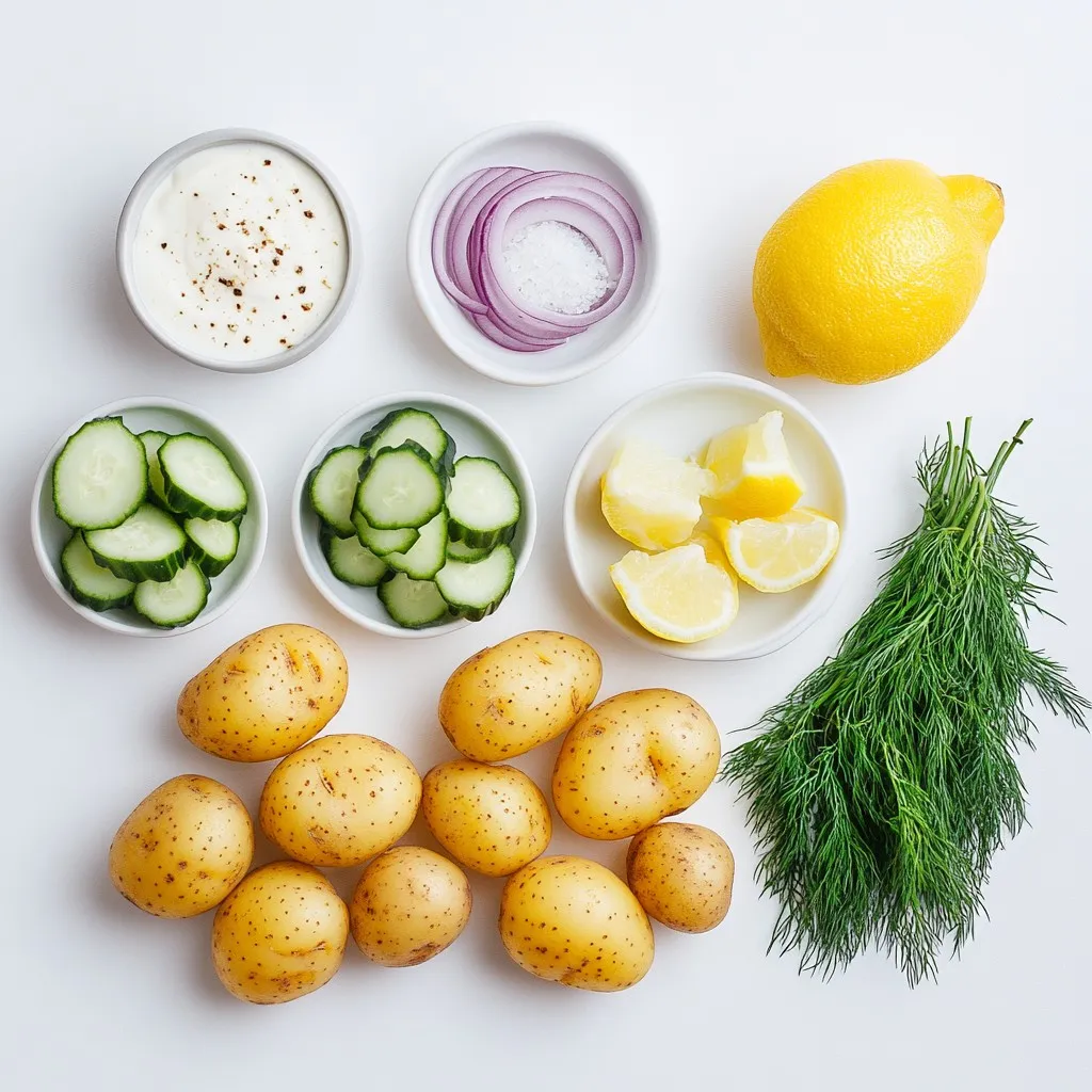 To make a delightful Lemon Dill Potato Salad, gather these fresh ingredients:
