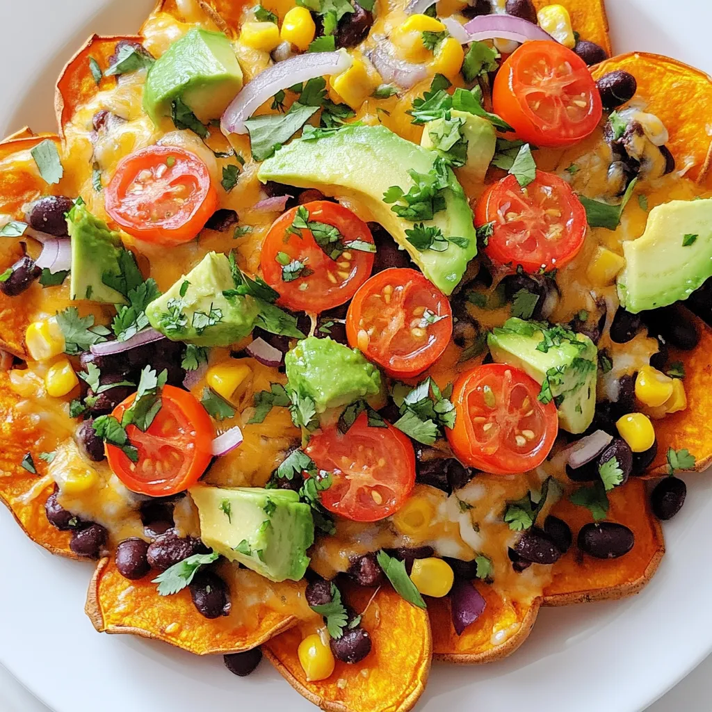 In this recipe, I focus on the sweet potatoes. They are the star of the show. Their natural sweetness pairs well with savory toppings. I slice them thinly to ensure a great crunch. The black beans and corn add protein and texture. This makes every bite satisfying.