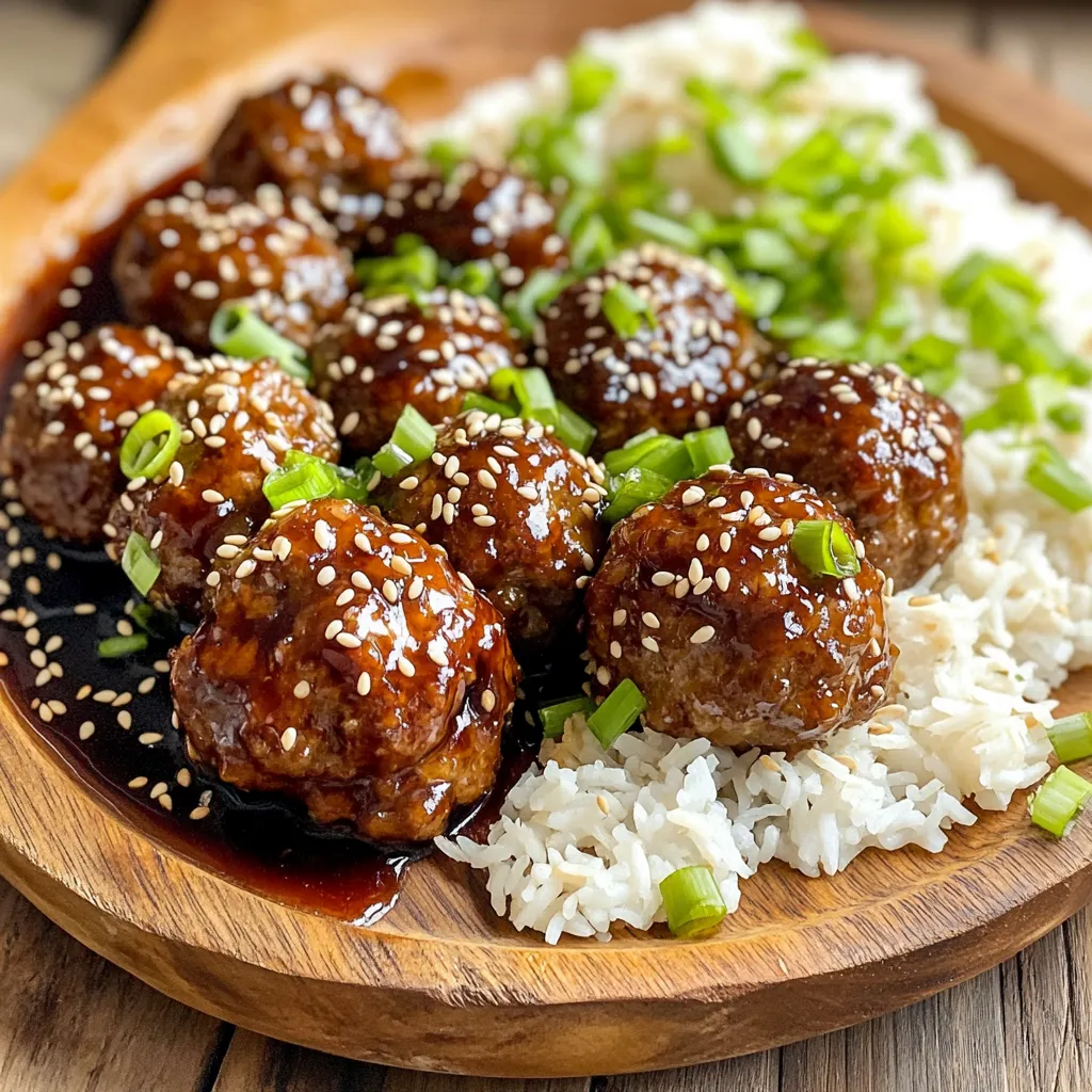 Make your meatballs shine when serving. Use a large platter and arrange them in a circle. Drizzle extra teriyaki sauce over the top. This adds color and flavor. Garnish with sesame seeds and chopped green onions for a fresh touch. Serve with fluffy rice or sliced veggies to add more color and balance.