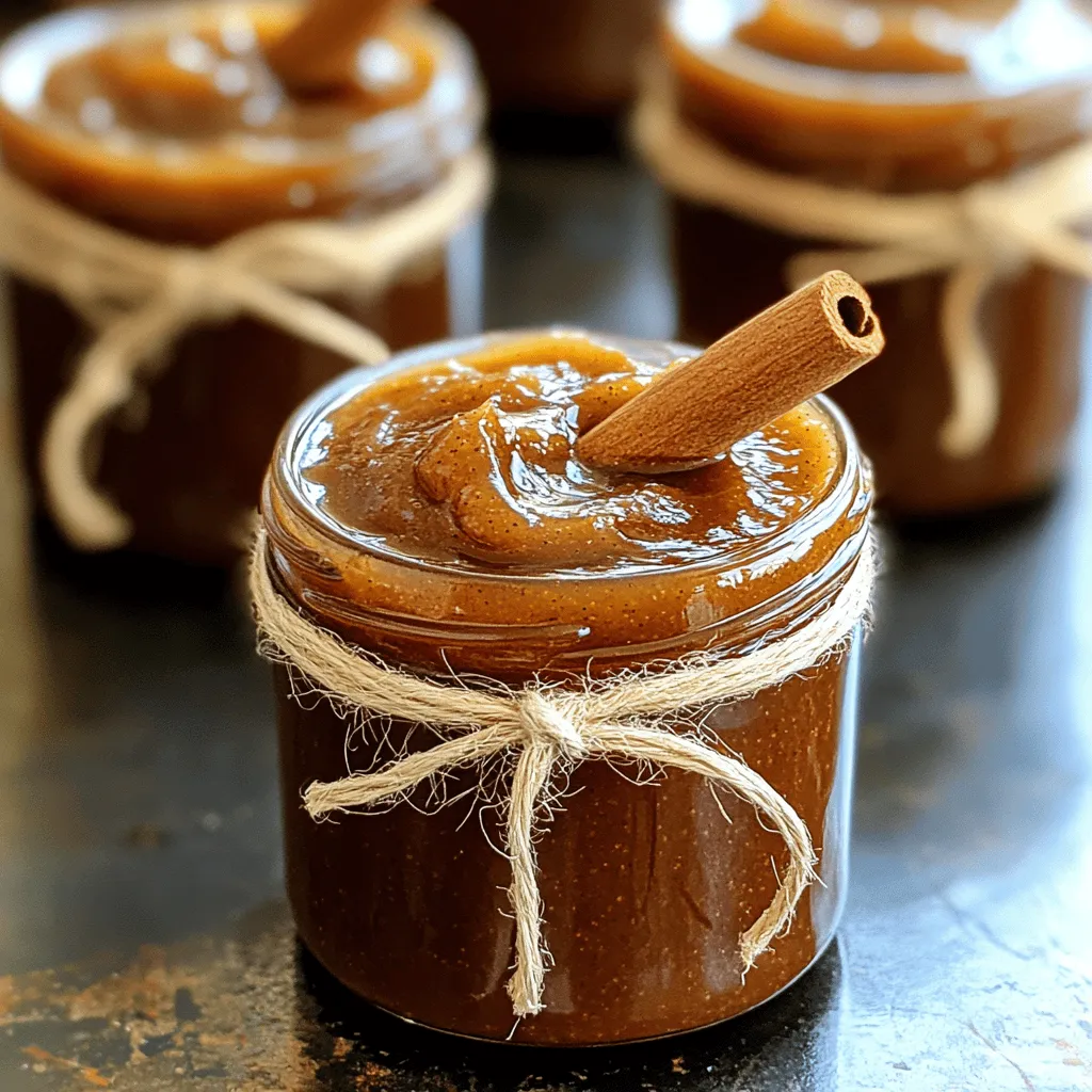 To make this delightful apple butter, gather these simple items: - 6 large apples, peeled, cored, and chopped - 1 cup maple syrup - 1 tablespoon ground cinnamon - 1 teaspoon ground nutmeg - 1/2 teaspoon ground ginger - 1/4 teaspoon sea salt - 1 tablespoon freshly squeezed lemon juice For the best flavor, I suggest using: - Granny Smith: These apples add a tart kick. - Honeycrisp: They offer a sweet and juicy taste. Both types work well together, giving your apple butter depth and balance. If you prefer your apple butter sweeter, consider adding: - 1/2 cup packed brown sugar This is optional. Adjust it based on your taste. You can always start with less and add more as needed. Start by peeling and coring the apples. I suggest using Granny Smith or Honeycrisp apples. These apples provide a great balance of tart and sweet. Chop the apples into small pieces. This helps them cook down faster and blend better. In your slow cooker, place the chopped apples. Add 1 cup of maple syrup for natural sweetness. Then, sprinkle in 1 tablespoon of ground cinnamon, 1 teaspoon of nutmeg, and 1/2 teaspoon of ginger. Don’t forget to add 1/4 teaspoon of sea salt. This enhances the flavor. Finally, pour in 1 tablespoon of freshly squeezed lemon juice. Stir everything well to mix. Cover the slow cooker with its lid. Set it to low heat for 8-10 hours, or high heat for 4-5 hours. This slow cooking makes the apples tender and flavorful. About halfway through, open the lid and stir the mixture. This promotes even cooking and blends the flavors. When the apples break down, use an immersion blender. This will create a smooth texture. If you prefer, you can blend in batches using a countertop blender. Taste your apple butter. If you want it sweeter, mix in some brown sugar. For a thicker apple butter, cook for another hour with the lid off. Let it cool before storing in jars. Enjoy your homemade treat! To get the right texture for your apple butter, blend it well. Start with soft apples; they break down easier. Cook on low for 8-10 hours for a thicker mix. If it's too thin, leave the lid off for the last hour. This lets moisture escape, thickening the butter. Stir often for even cooking, and always taste before serving. An immersion blender is my top choice. It makes blending quick and easy right in the slow cooker. If you don’t have one, use a countertop blender. Just let the mixture cool first to avoid splatters. Blend it in small batches. This way, you get a smooth texture without the mess. You can adjust flavors to your taste. If you like more spice, add extra cinnamon or a pinch of cloves. Want it sweeter? Mix in more brown sugar or maple syrup until you’re happy. A splash of vanilla can also brighten the flavor. Experiment with what you like best! {{image_4}} You can change the spices to suit your tastes. Try adding cloves for warmth or allspice for depth. A pinch of cardamom can also add a nice twist. Experiment to find your favorite mix. Just remember, a little goes a long way! If you prefer less maple syrup, consider honey or agave nectar. These sweeteners add their own flavors. You can use brown sugar alone for a deeper sweetness. Always taste as you go to find the right balance, especially if you adjust the sweeteners. Apple butter is versatile and pairs well with many foods. Spread it on toast or muffins for breakfast. It also complements meats like pork or chicken. You can even stir it into oatmeal or yogurt for added flavor. Try using it in baking, like in cakes or cookies, for a sweet surprise. After you make your slow cooker maple cinnamon apple butter, cool it to room temp. Once cool, transfer the apple butter into clean jars or airtight containers. Store it in the fridge. It will keep fresh for up to 2 weeks. Always use a clean spoon when scooping it out to avoid spoilage. If you want to keep your apple butter longer, consider canning it. Fill sterilized jars with the hot apple butter, leaving some space at the top. Seal tightly and process in a water bath for about 10 minutes. This method can extend its shelf life for up to a year. Homemade apple butter lasts about 2 weeks in the fridge. In sealed jars from canning, it can last up to a year. Always check for signs of spoilage before using. If you see mold or an off smell, it's best to discard it. Use your apple butter on toast, pancakes, or as a filling in baked goods for a tasty treat! Yes, you can use different types of apples. I recommend Granny Smith or Honeycrisp. They add a nice balance of sweet and tart flavors. Other varieties like Fuji or Gala can also work well. Just remember, the taste may change slightly based on the apples you choose. You can store apple butter in the refrigerator for up to 2 weeks. Make sure to keep it in an airtight container. For longer storage, use canning methods to preserve it for several months. Just ensure the jars are sealed properly for safety. There are many great uses for leftover apple butter. Spread it on toast, pancakes, or muffins. You can also mix it into yogurt or oatmeal for added flavor. It makes a great topping for ice cream too. The options are endless! Yes, you can freeze apple butter. Pour it into airtight containers, leaving space at the top for expansion. It can last in the freezer for up to a year. When you’re ready to use it, thaw it in the fridge overnight. Yes, this recipe is suitable for canning. Follow safe canning practices to ensure it is preserved correctly. Use sterilized jars and process in a water bath. This way, you can enjoy your apple butter for many months ahead. You learned about the key ingredients for apple butter, including varieties and optional sweeteners. We discussed step-by-step instructions for preparation and cooking. Tips for perfecting texture and flavor enhancements rounded out the guide. Finally, we covered variations, storage methods, and FAQs. With all this, you can make tasty apple butter with ease. Get creative, and enjoy sharing it with friends and fa