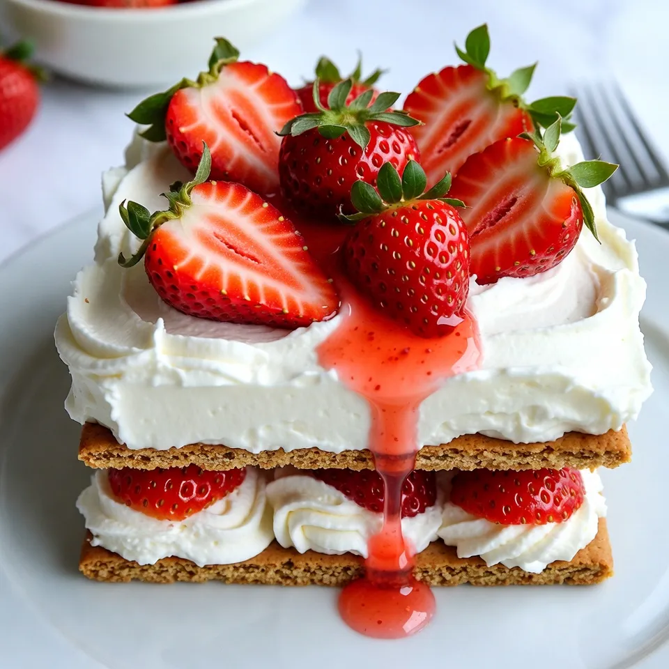 Graham crackers form the base of this icebox cake. They provide a crunchy contrast to the creamy filling. You can use extra fresh strawberries as a garnish. This adds color and makes the dessert look even more inviting.