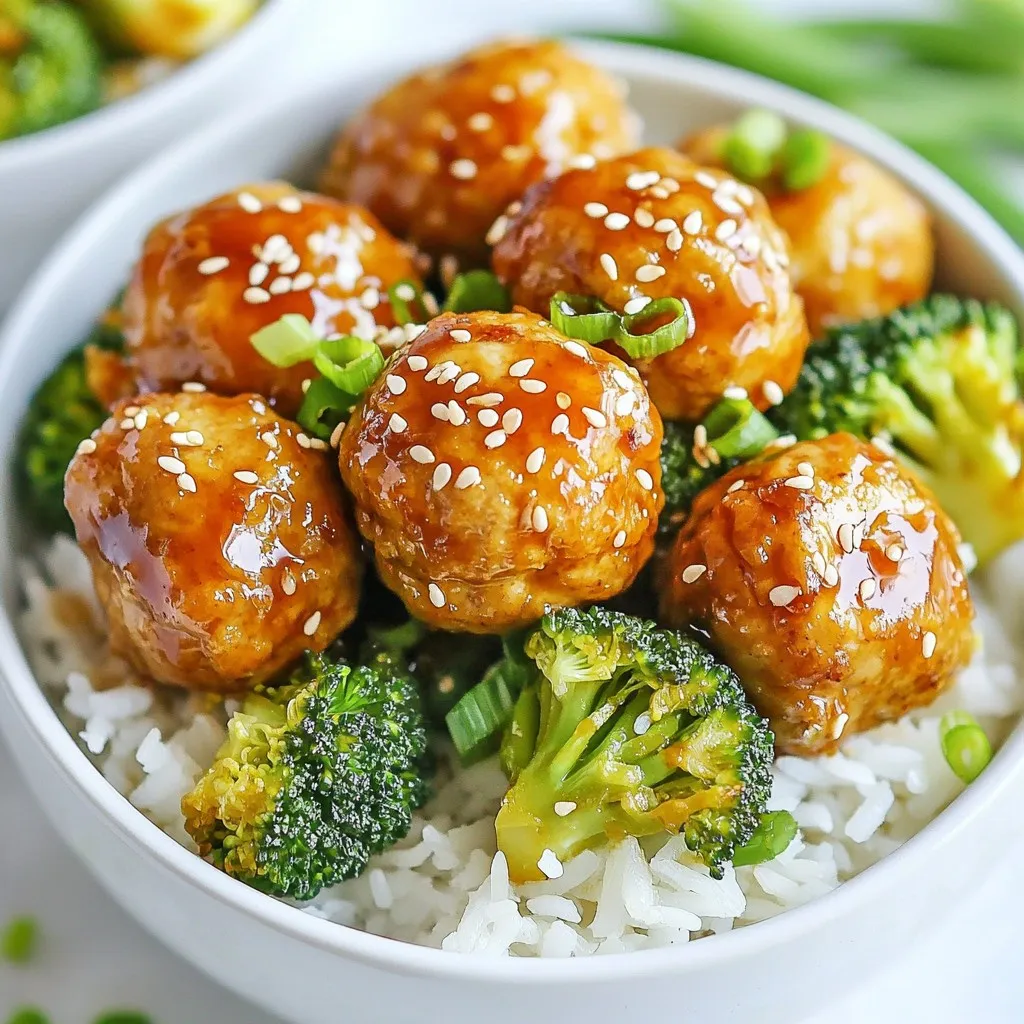 Serving is just as important as cooking. Use bright bowls to make the dish pop. Layer the rice, meatballs, and broccoli neatly. Drizzle extra teriyaki sauce on top for flair. Finish with a sprinkle of sesame seeds and more green onions. You can also add a lime wedge on the side for a fresh touch. This makes the meal look fun and inviting!