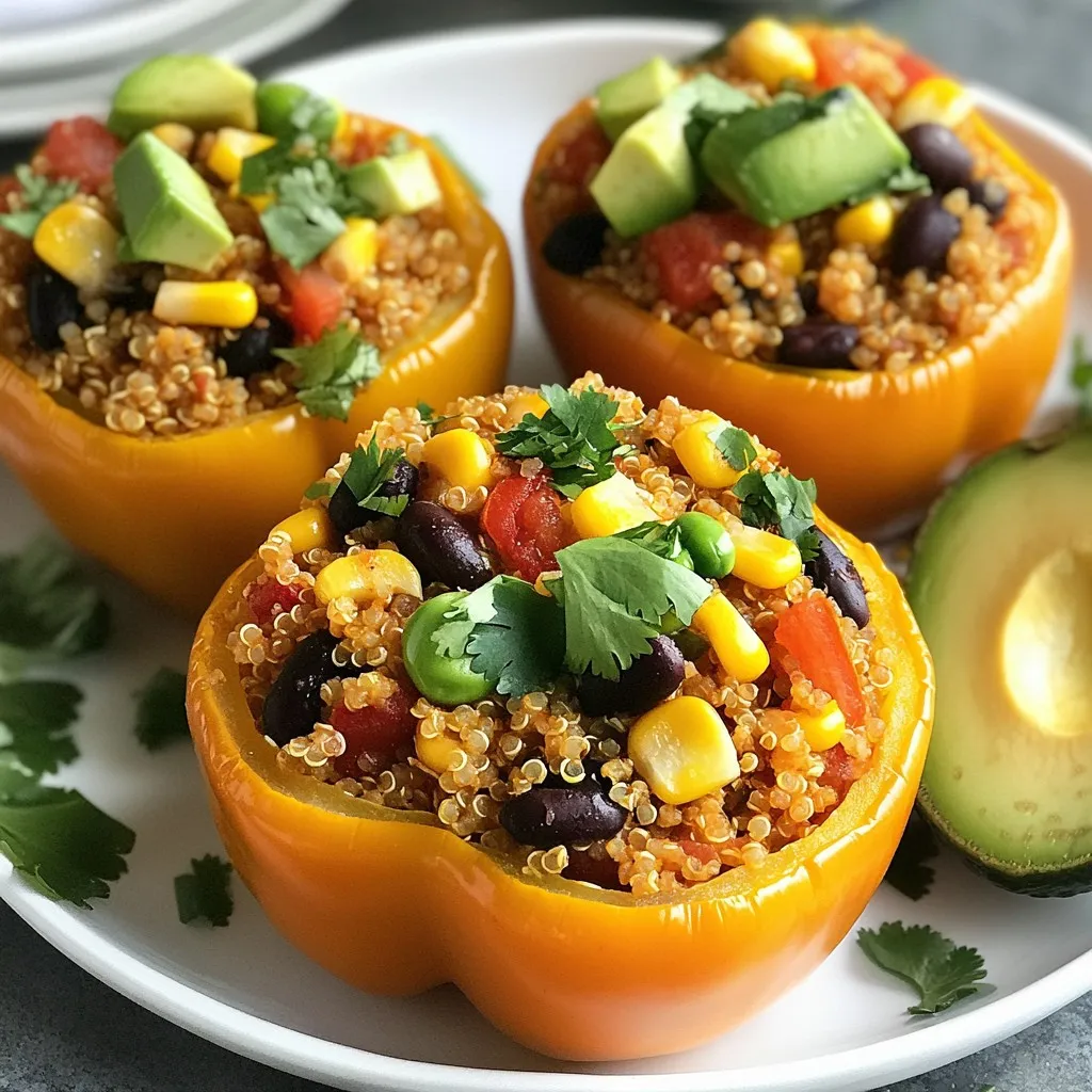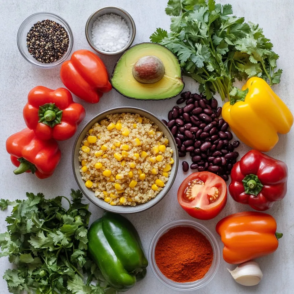 For this dish, I love using vibrant bell peppers. They add color and flavor. You can pick any color you like, such as red, yellow, or green. Quinoa is the star of the filling. It is packed with protein and very filling. The vegetable broth gives it a nice taste.